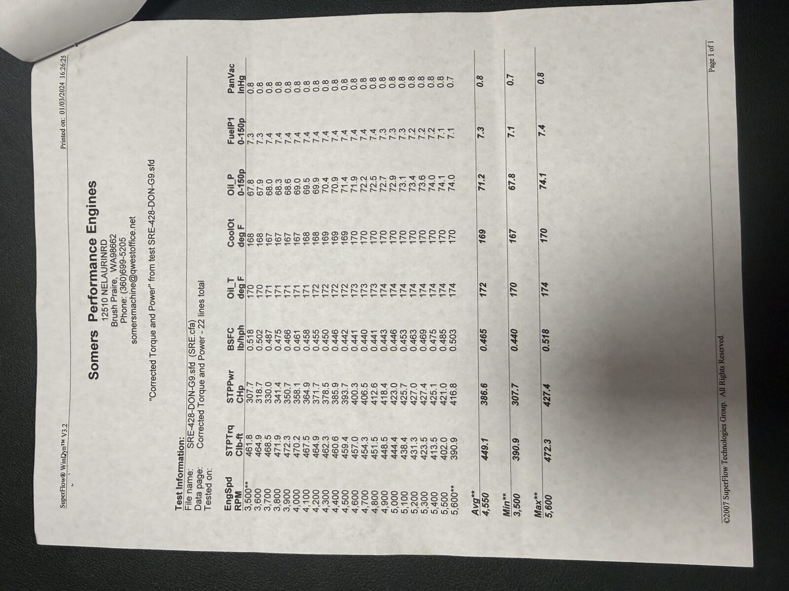 427 chevaux à 5300 t/min