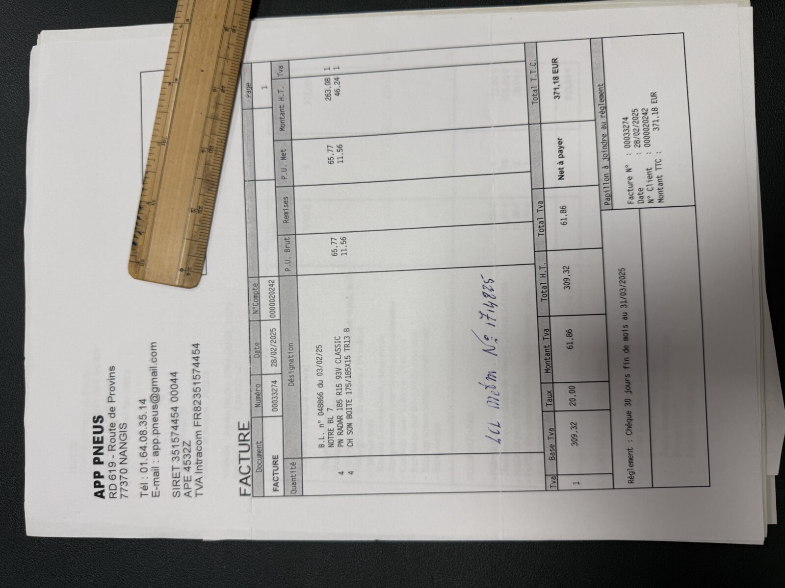 – Pose 4 pneus neufs