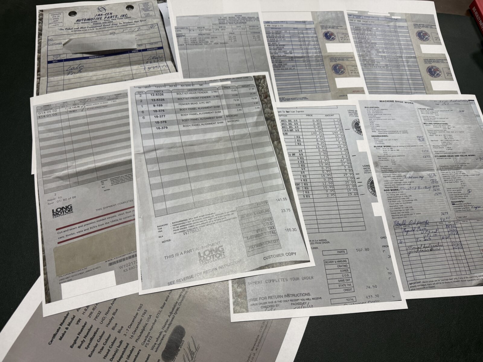 Dossier historique, handbook, copies certificat heritage et factures disponibles