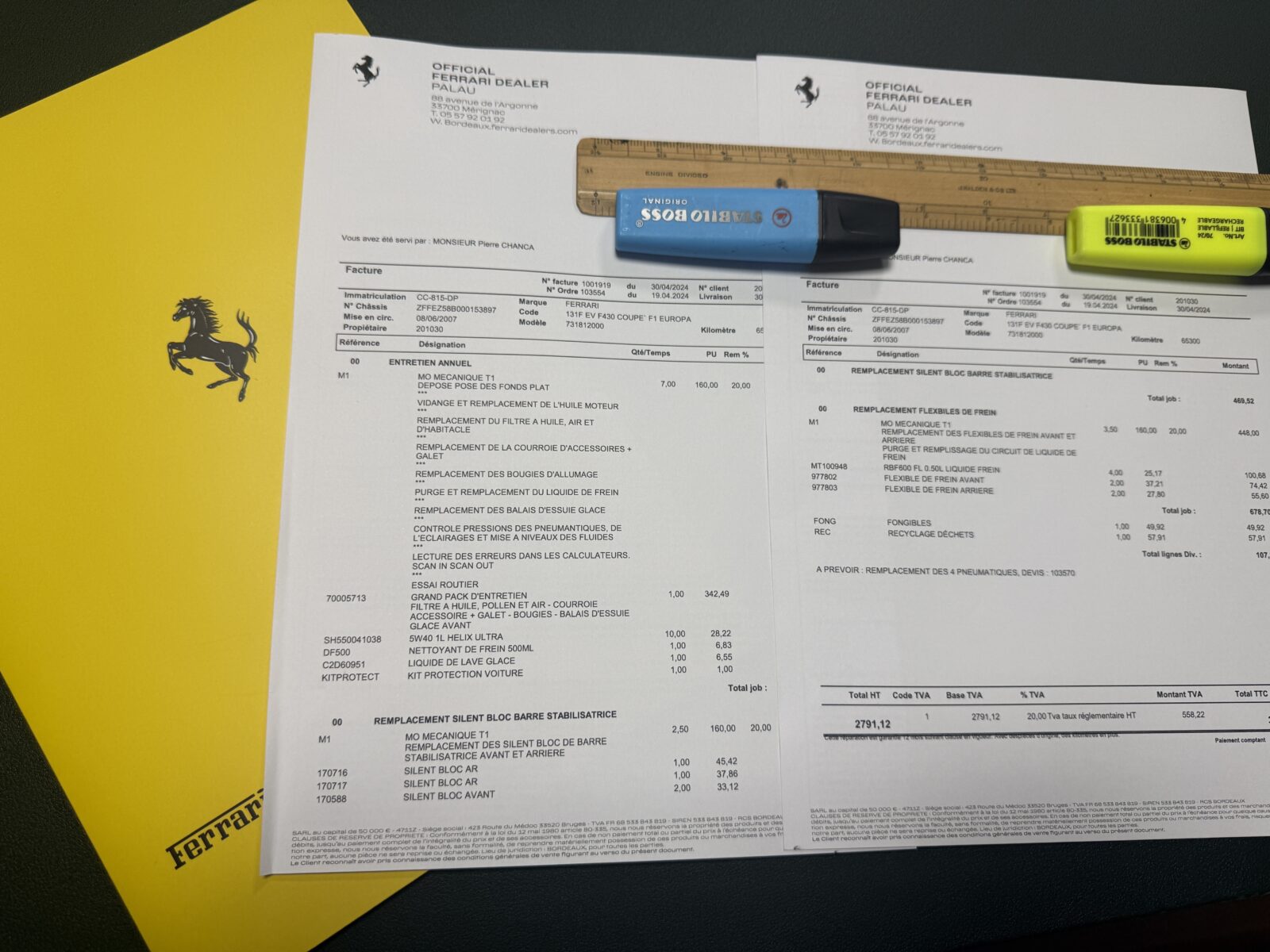 Dernière révision effectuée en Avril 2024 à 65300 kms dans la concession Ferrari de Bordeaux