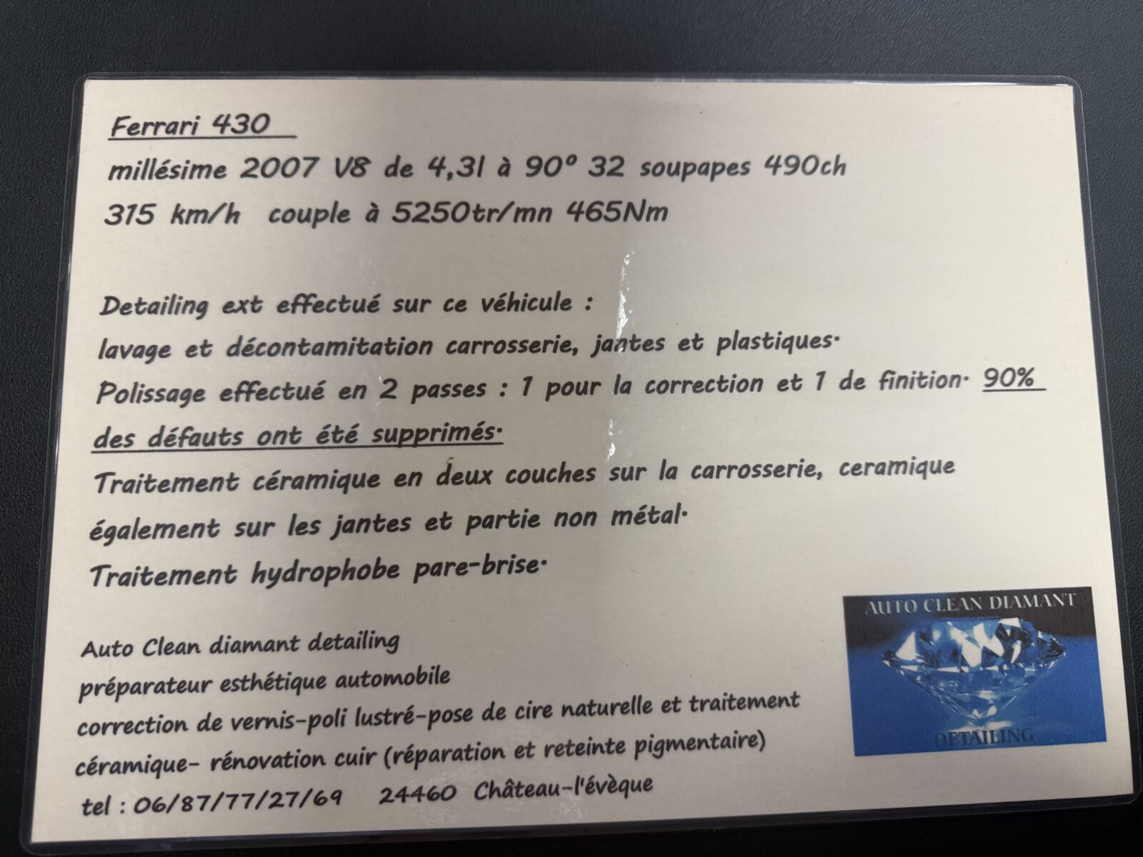 Traitement céramique carrosserie effectué en Mars 2023