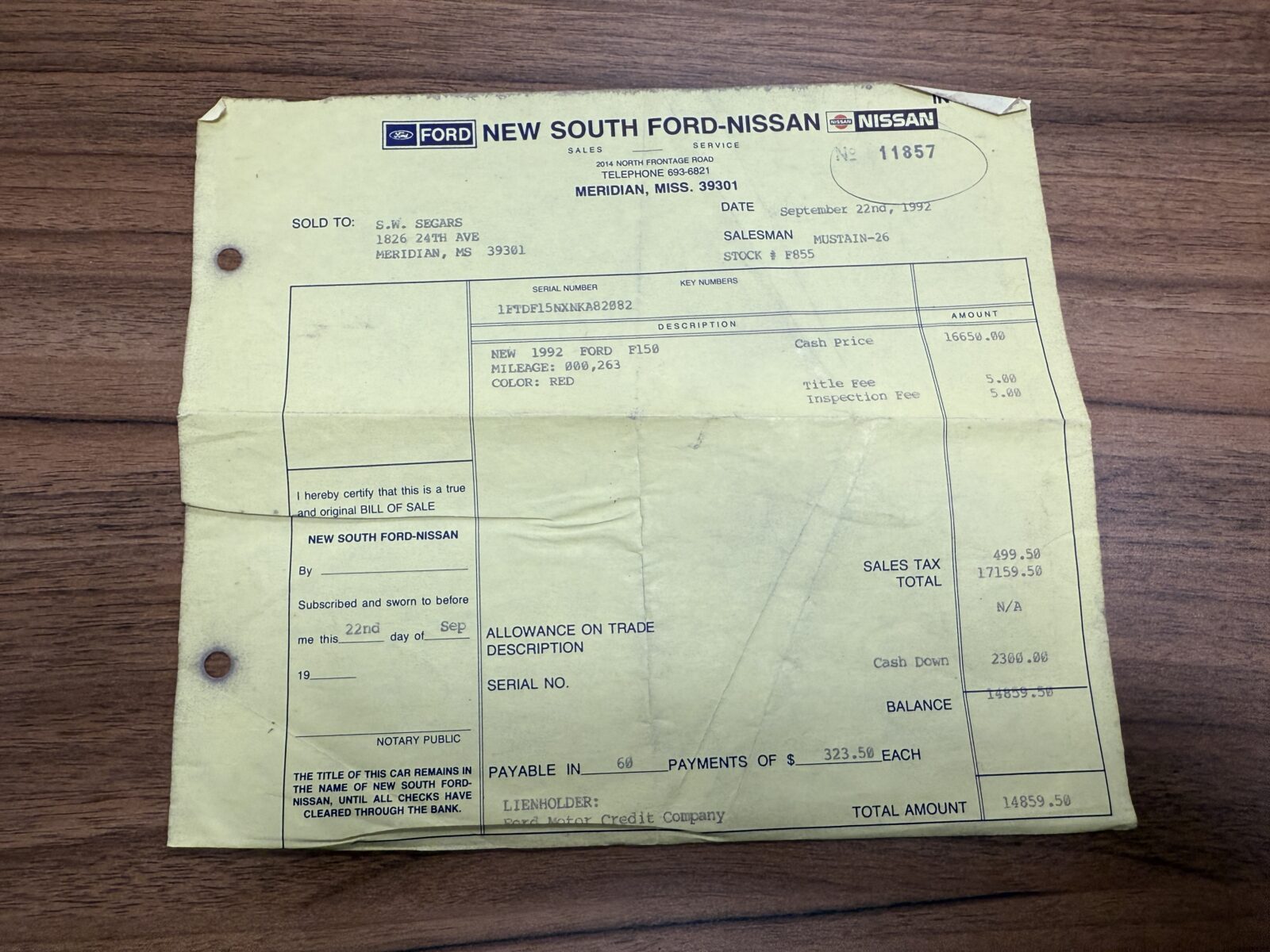 Historique, documents d’origine, facture de vente de 1992, carfax disponibles