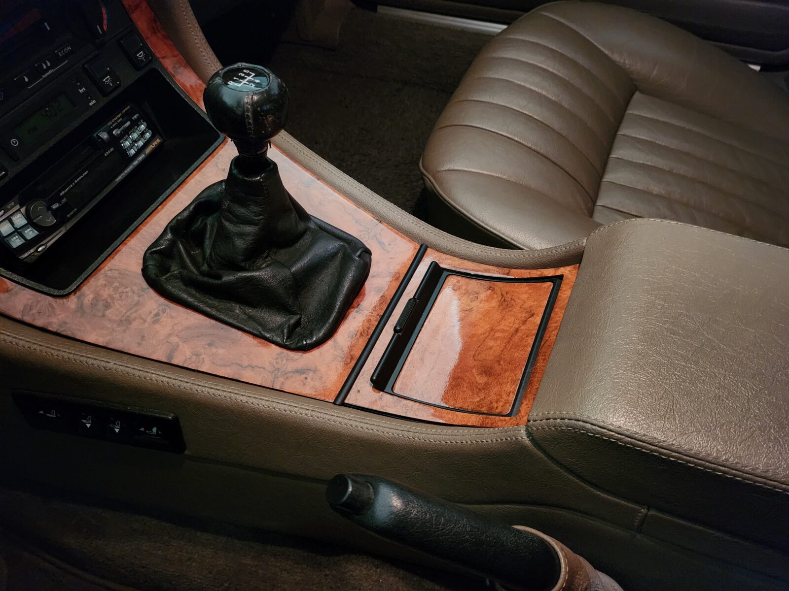 Cuir étendu sur la console centrale