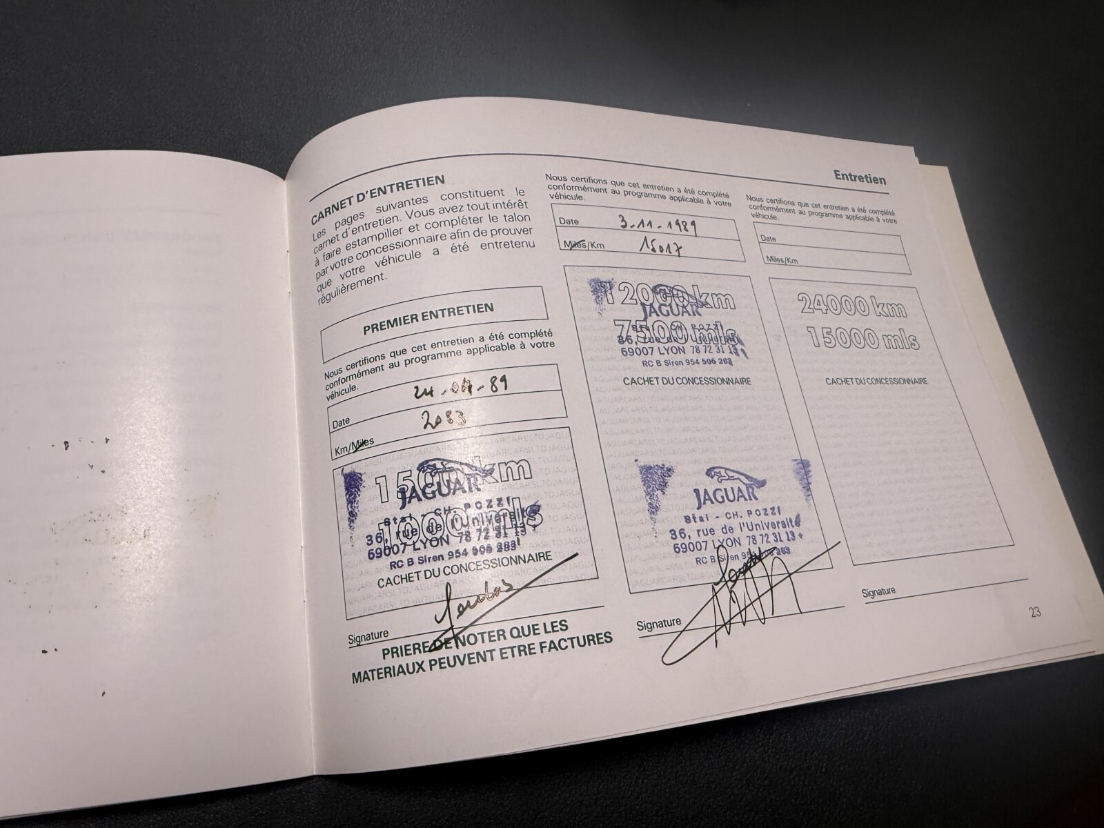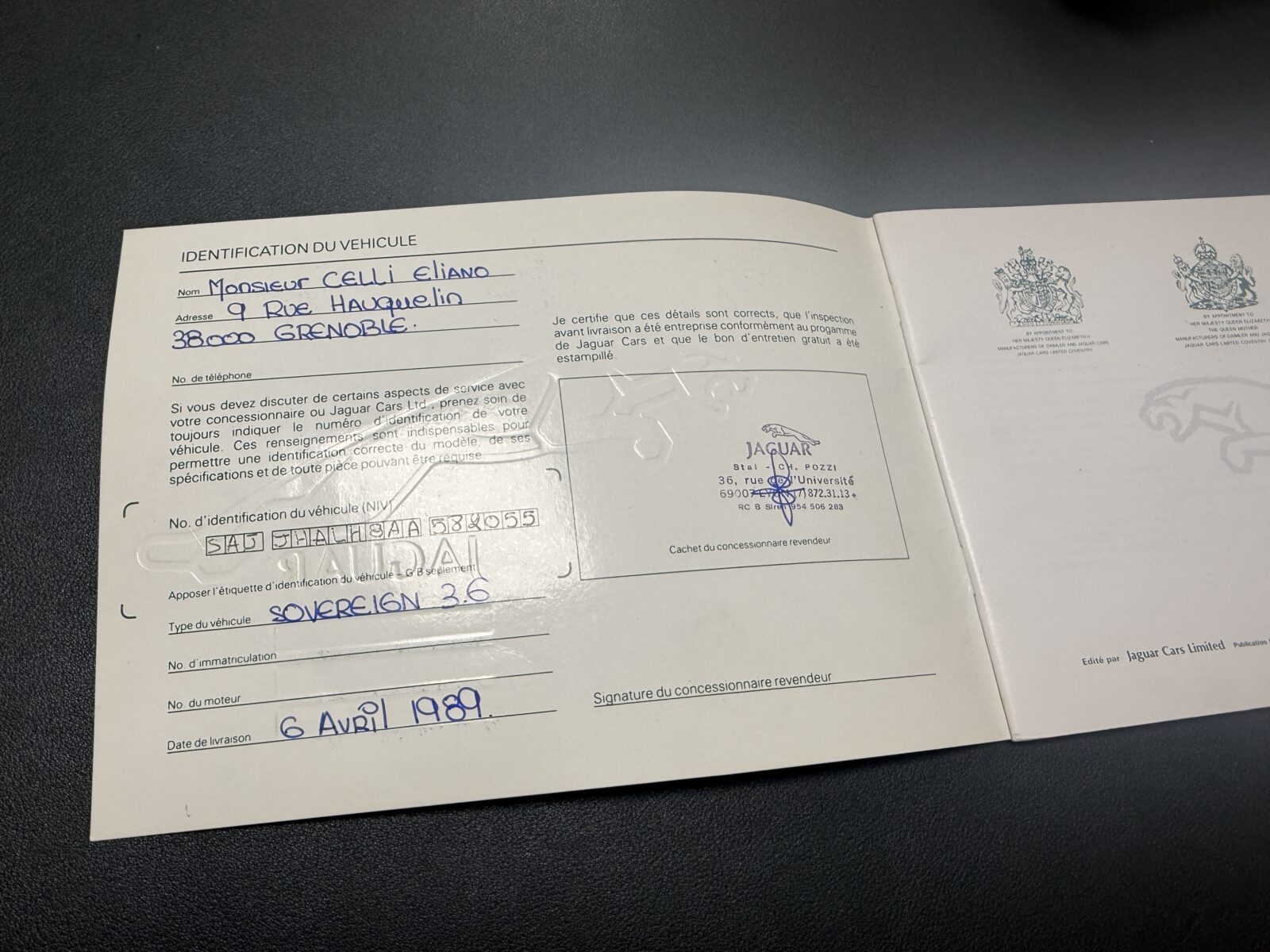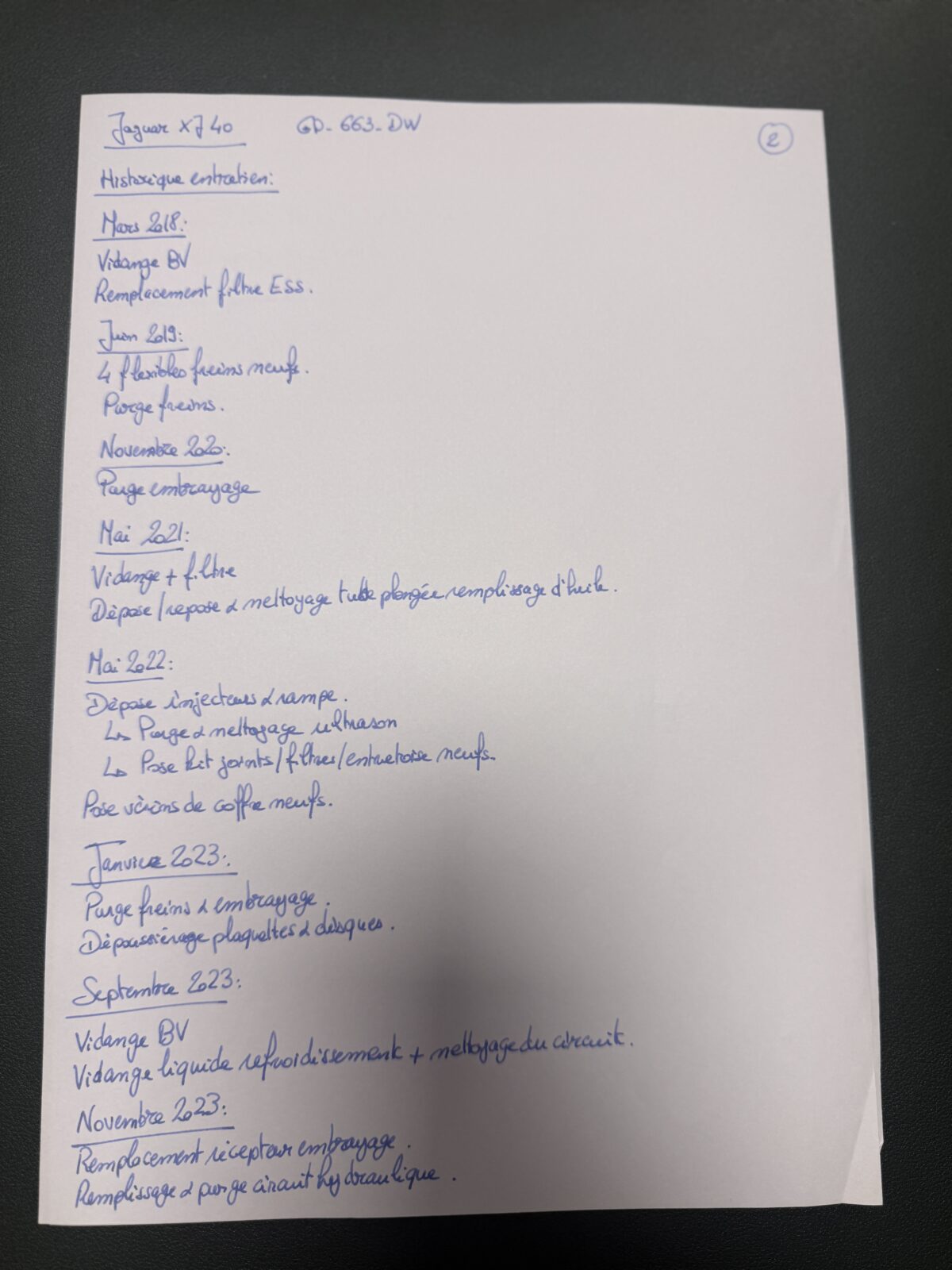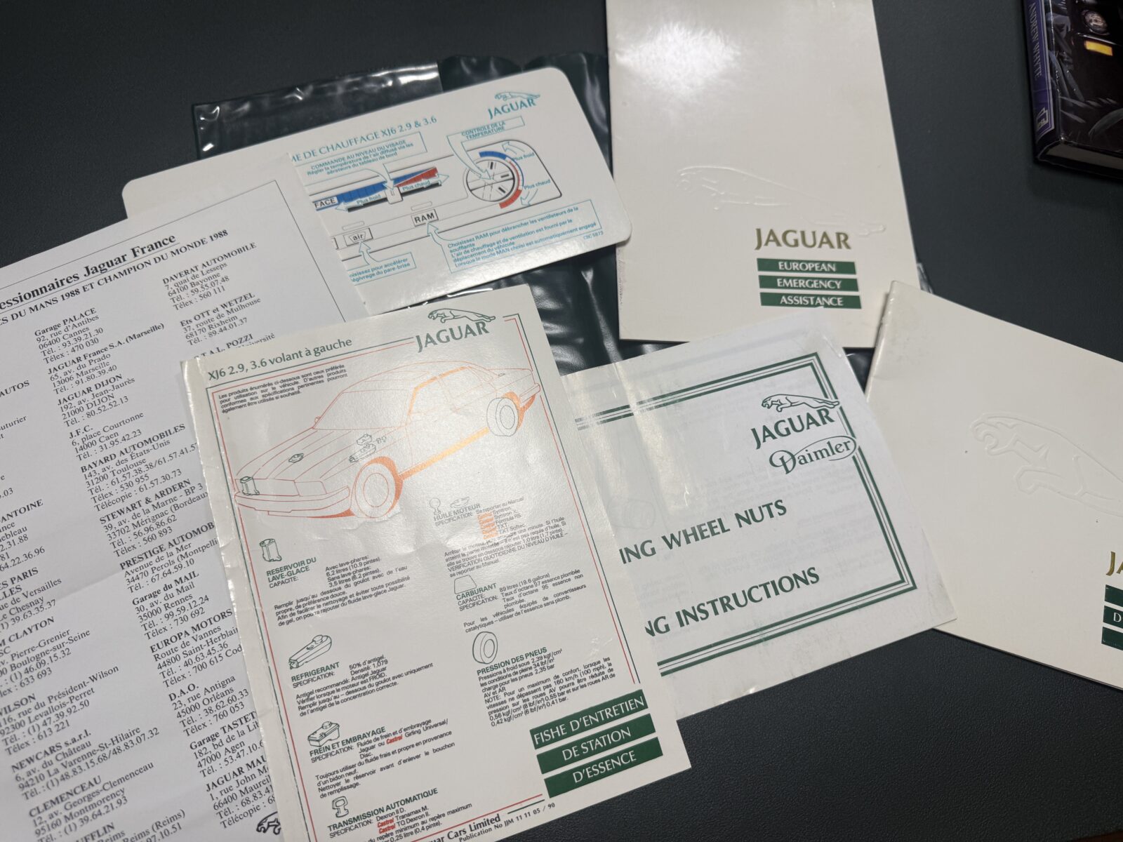 Historique, pochette Jaguar, carnet d’entretien, factures, revues techniques disponibles