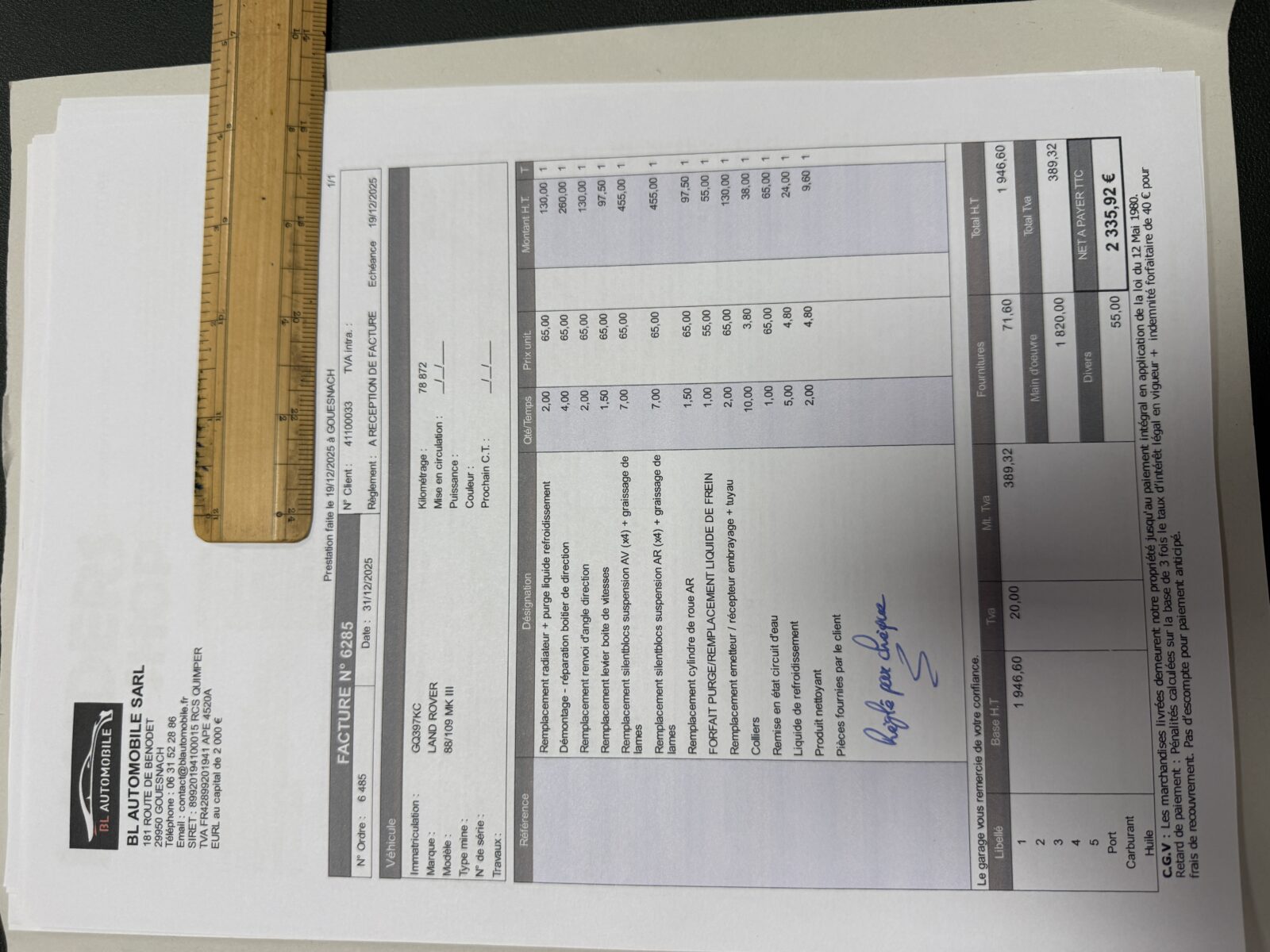 – Remplacement silentblocs suspension AR (x4) + graissage des lames