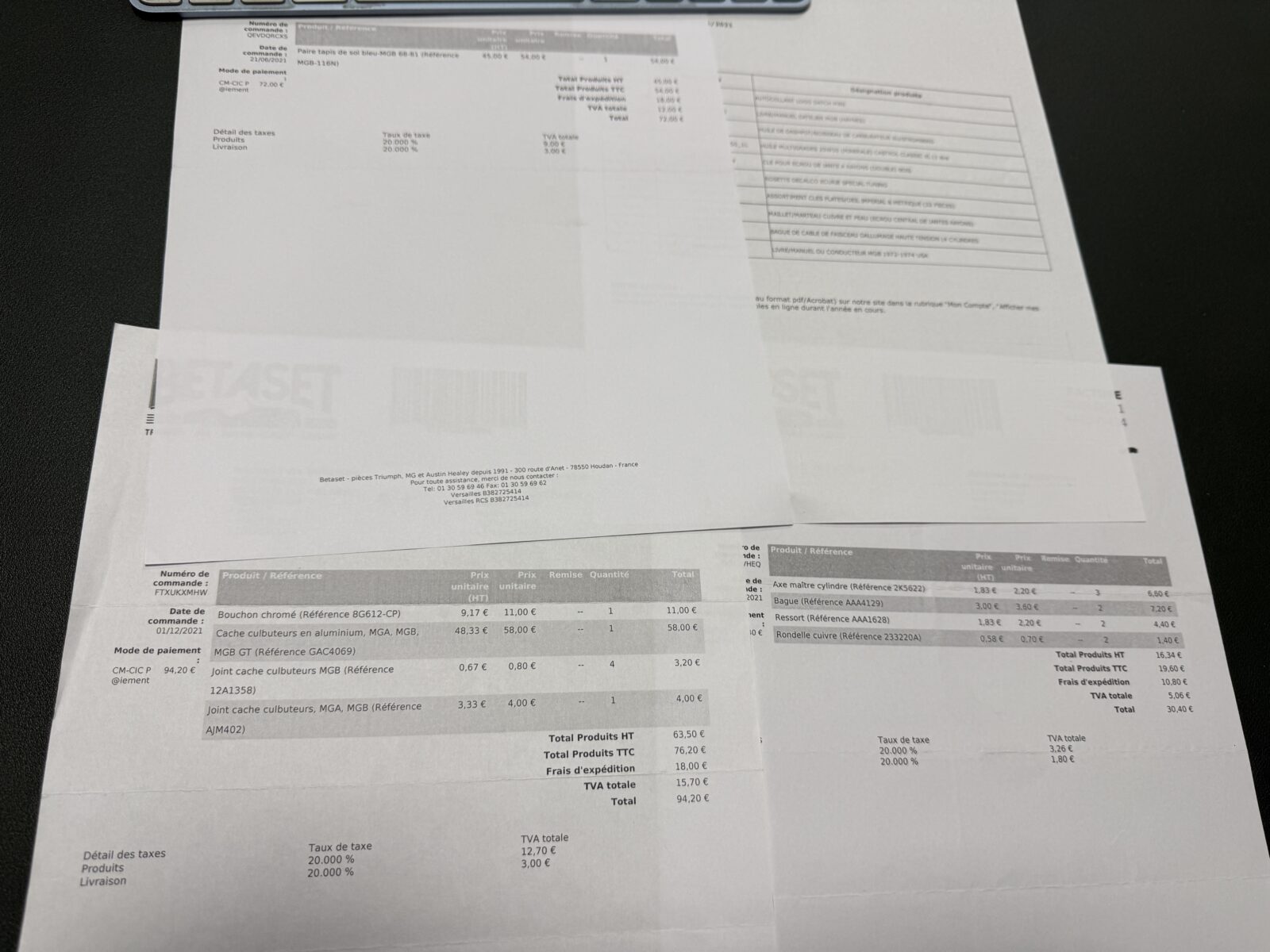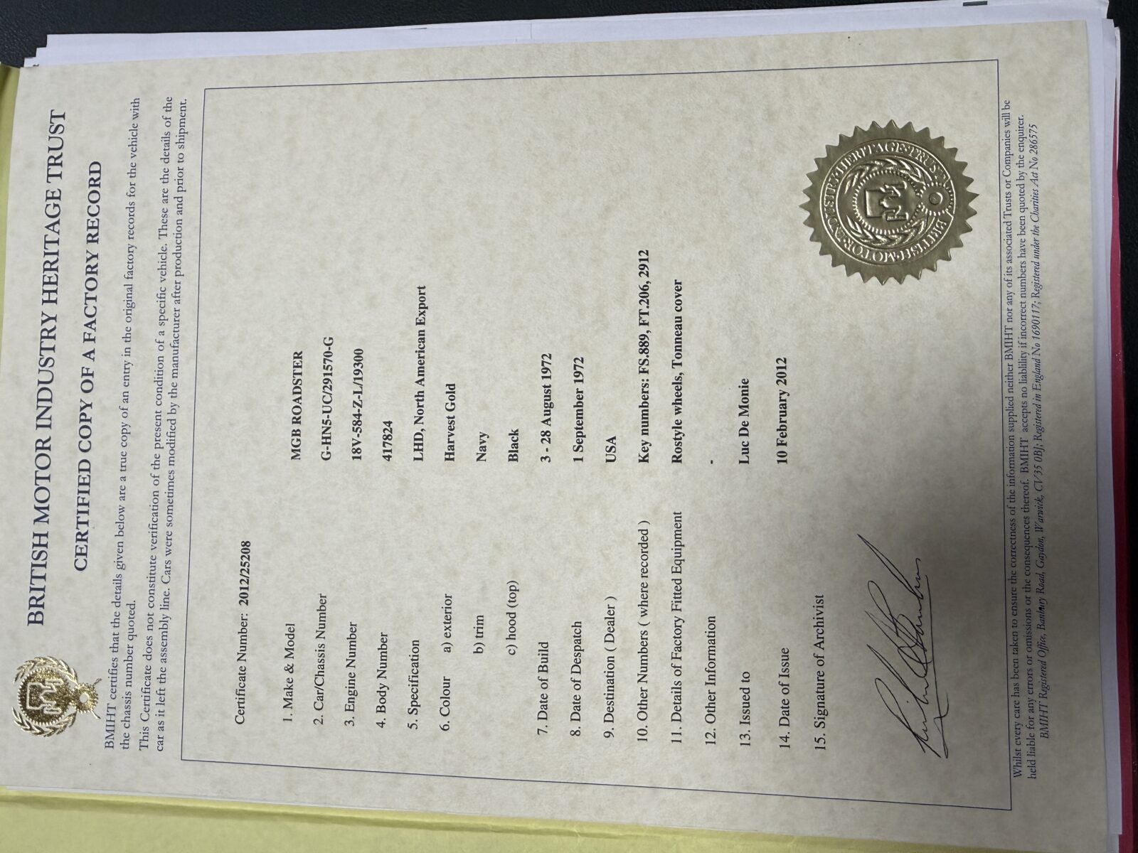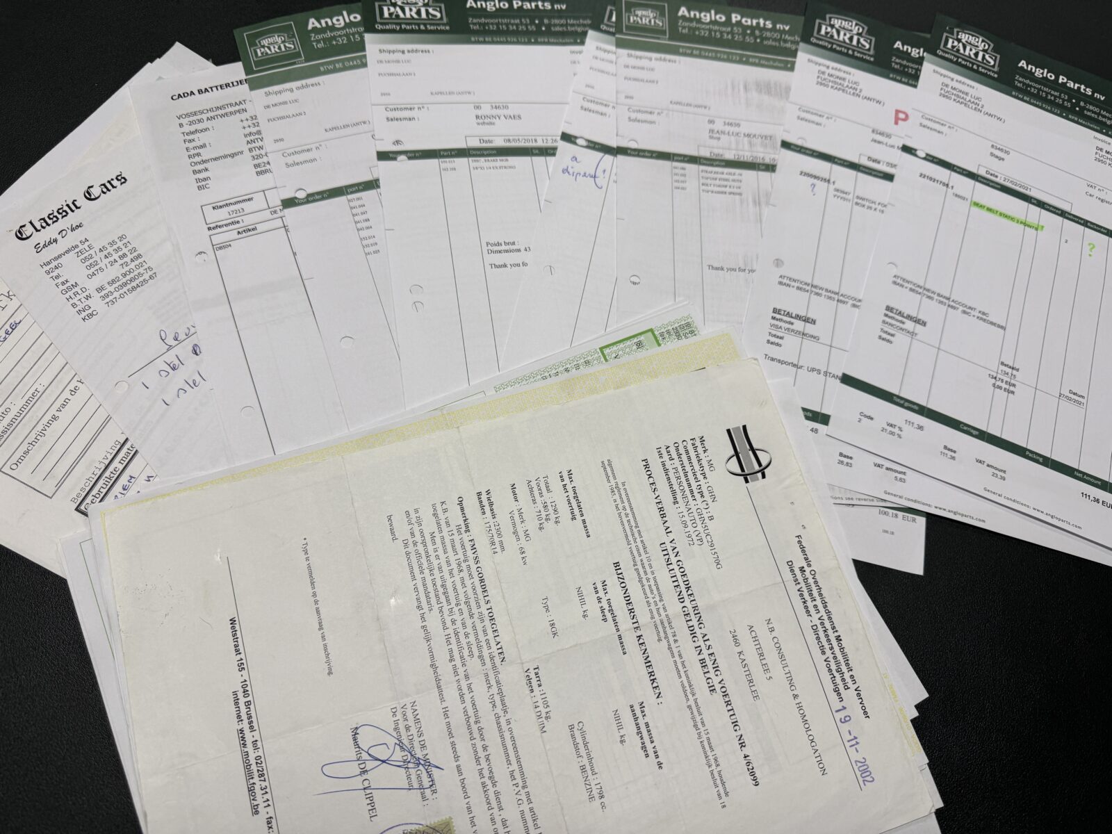 Dossier historique, certificat heritage, handbook, factures disponibles